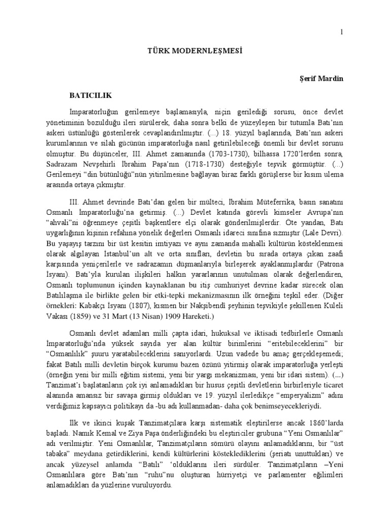 Turk Modernlesmesi Serif Mardin Kitabin Ozeti Pdf